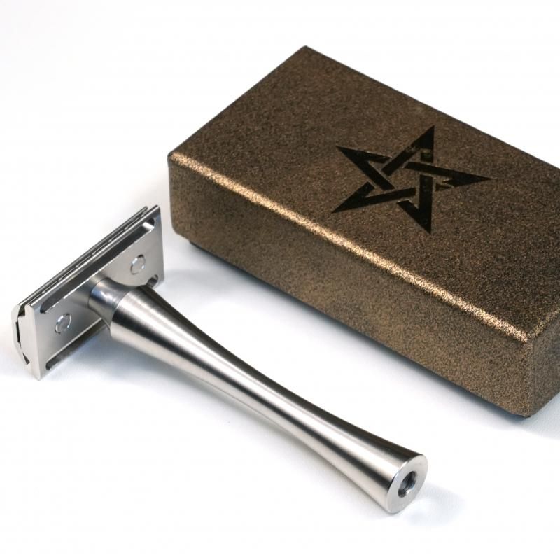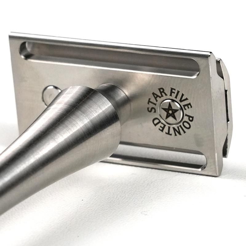 マシンフィニッシュ仕上げの日本製ステンレスカミソリ。